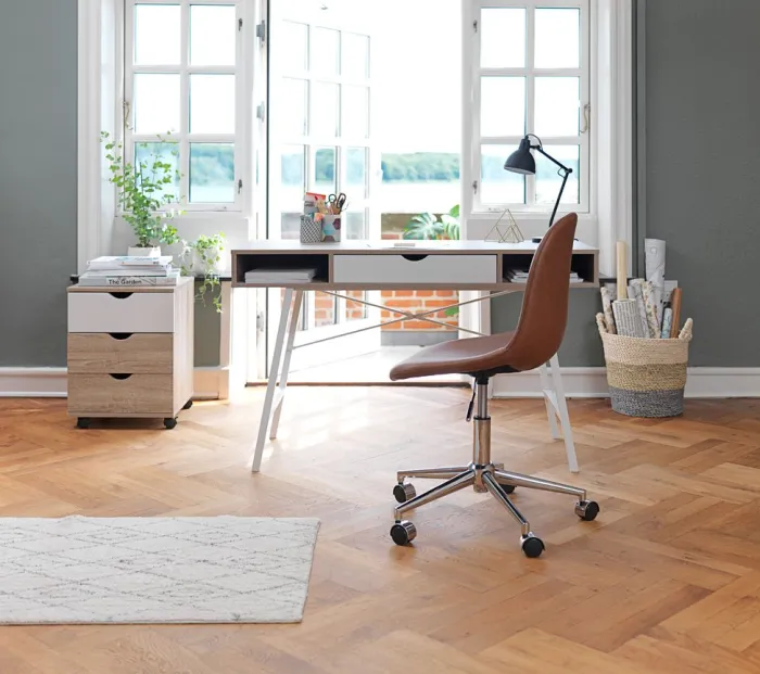 ABBETVED Skriveborde|Skrivebord 48×120 eg/hvid Eg+Hvid