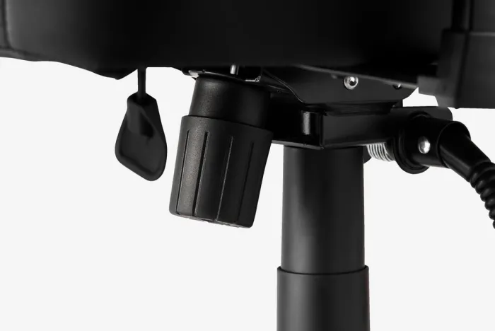 Kunstlæder. Pude til ekstra støtte i nakken. Med justerbar lændestøtte, justerbare armlæn, trinløs vippefunktion og justerbar højde. B70 x H124-133 x D70 cm