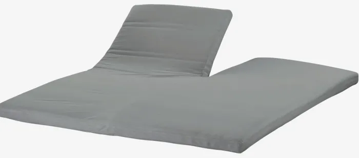 100% bomuld. Passer til dobbelt topmadras til elevationsseng. Lagnet har praktisk snit i hovedenden, hvilket gør, at hovedenderne kan bevæge sig uafhængigt. Med elastik i kanten. 180x200x6-10 cm