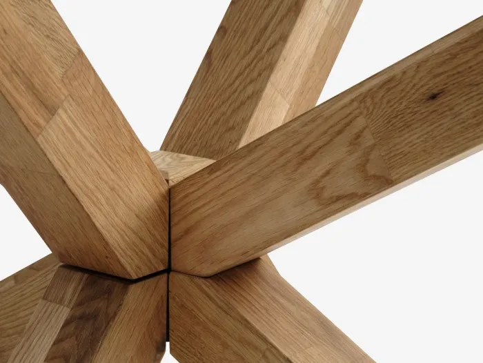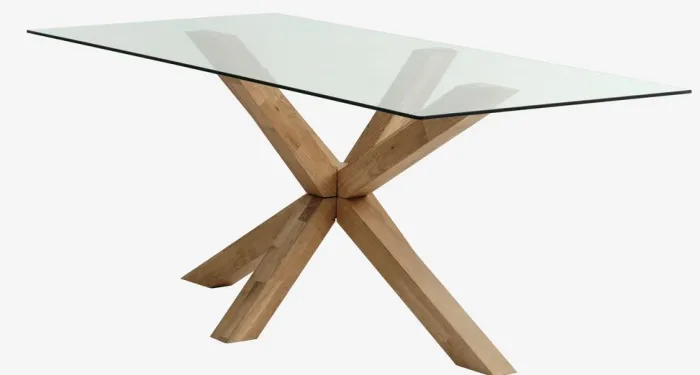 Spisebord med bordplade i hærdet glas og ben i massiv eg. Træet er behandlet med olie for at beskytte det og fremhæve dets naturlige farve. B90 x L190 x H75 cm