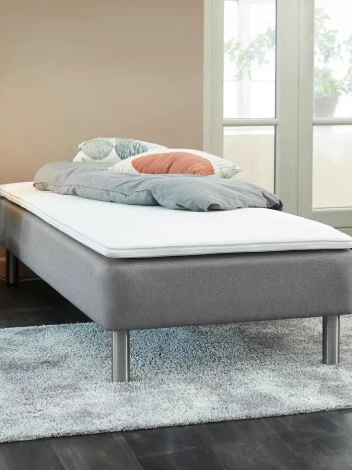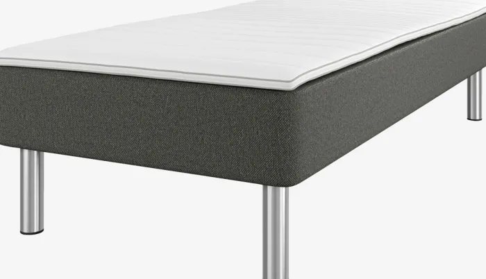 Boxmadras 90×200 cm med bonell-fjedre 115/m², polstret med purskum. Inkl. 4 cm tyk topmadras med kerne af purskum. Vaskbart betræk med en kraftig quiltning. Ekskl. ben.