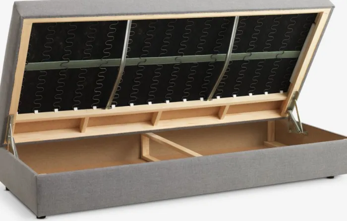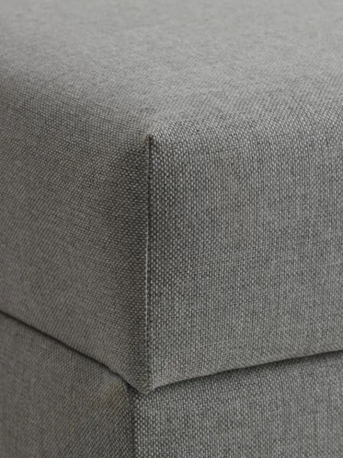 Stof. Sæde- og ryghynder i skum. Ryghynder med anti-slip og tyngdebund så hynderne ikke glider. Med opbevaringsplads. B196 x H72 x D91 cm