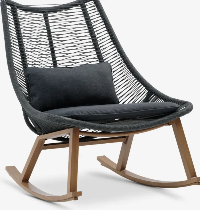 Gyngestol i aluminium og polyester. Inkl. luksushynder med slidstærkt, strukturvævet betræk. B79 x H143 x D100 cm