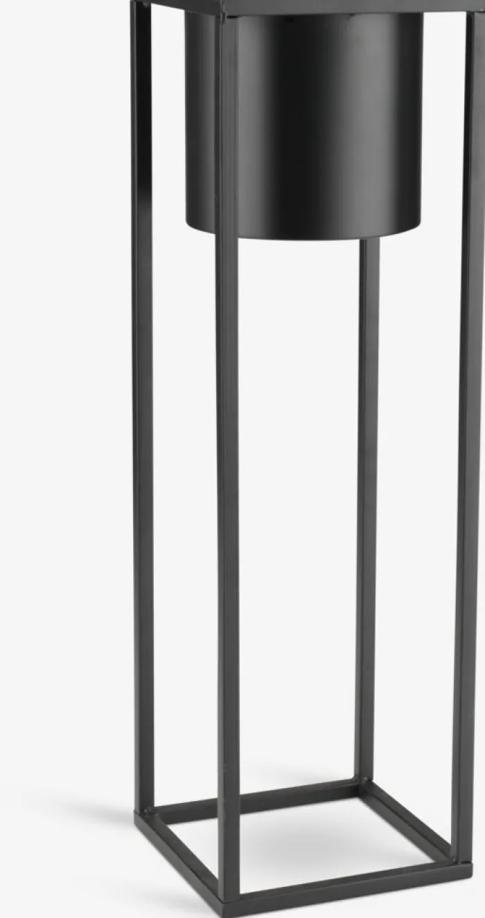 Sort blomsterpotte i metal med et minimalistisk og moderne design. Denne blomsterpotte er hævet på en høj, åben ramme, der giver et elegant og luftigt udtryk. Perfekt til at fremvise dine yndlingsplanter og tilføje et stilfuldt touch til din indretning. B15 x L15 x H50 cm