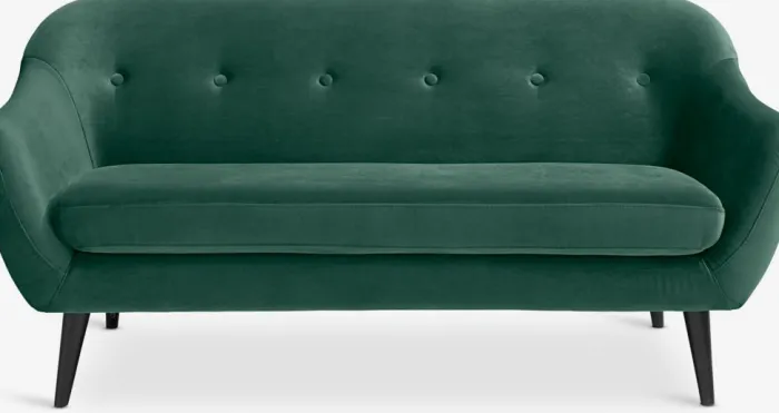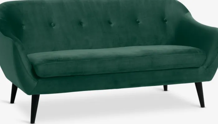 2,5-personers sofa med velourbetræk. Sæde- og ryghynder i skum. Ben i massivt træ. B170 x H82 x D81 cm