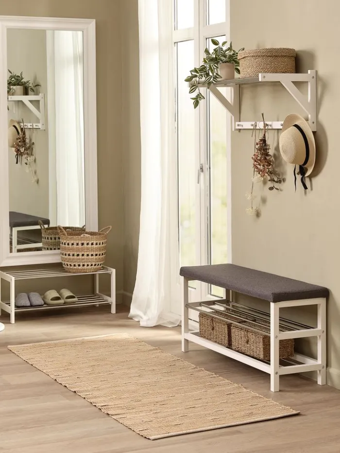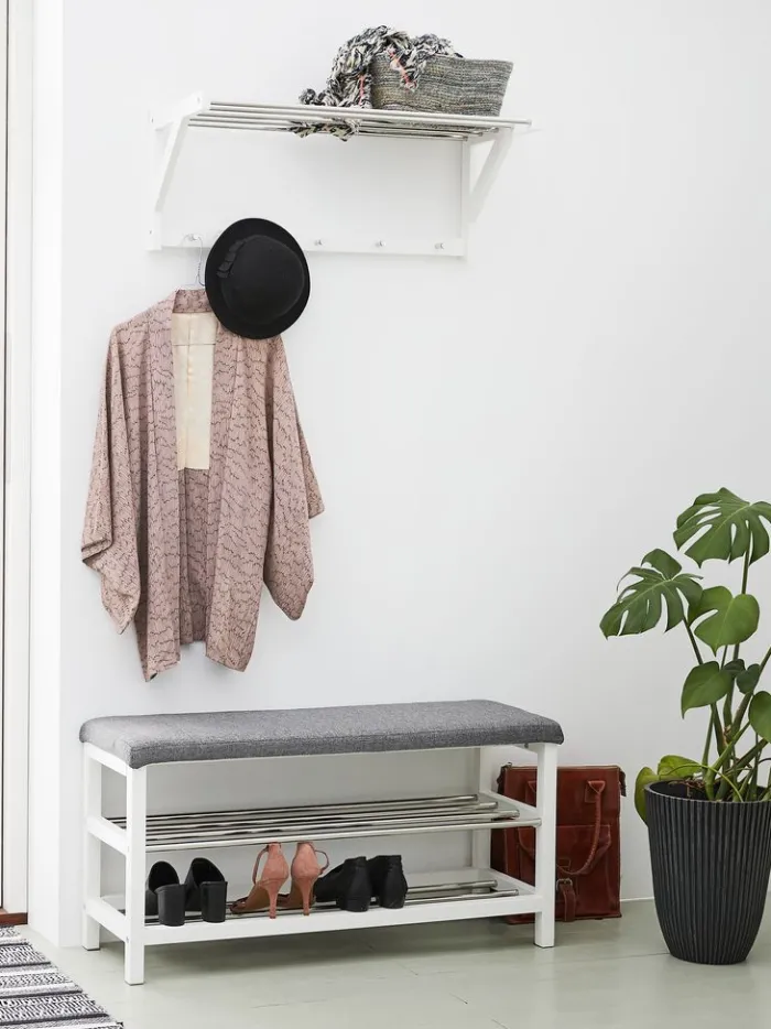 EGESKOV Bænke|Entrebænke|Bænk m/skohylder stål/ Hvid