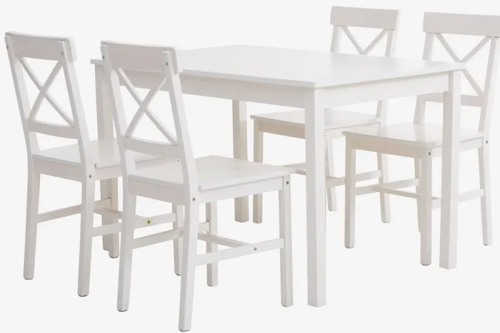 EJBY Spisebordssæt|L118 bord hvid + 4 stole hvid