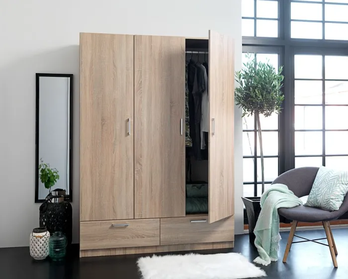 ELLESTED Garderobeskabe Med Skydedøre|Garderobeskabe Med Skydedøre|Garderobeskab 144×200 3 låger 2 skuffer efarve Eg