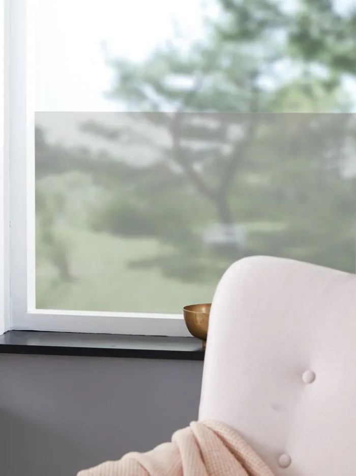 Tonet vinduesfolie som giver privatliv til vinduer og glasdøre, samtidig med at det reducerer varme og lys fra solen. 45×200 cm
