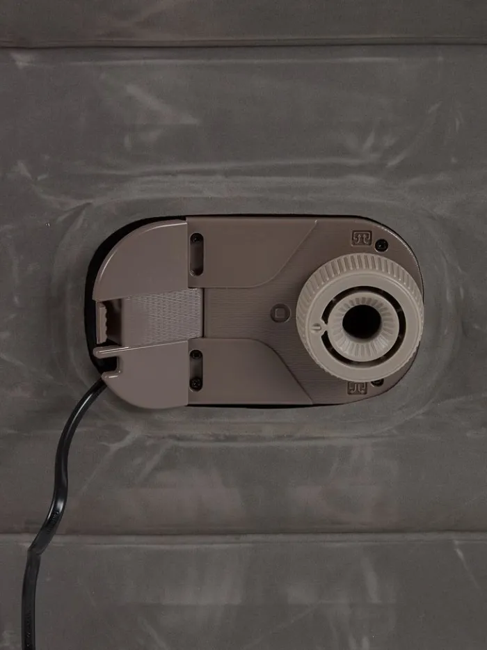 Luftmadras i PVC med blød overflade af velour. Den indvendige konstruktion er med stabiliserende TRITECH邃ælker. Med indbygget elektrisk pumpe. Inkl. opbevaringstaske. B97 x L191 x H46 cm
