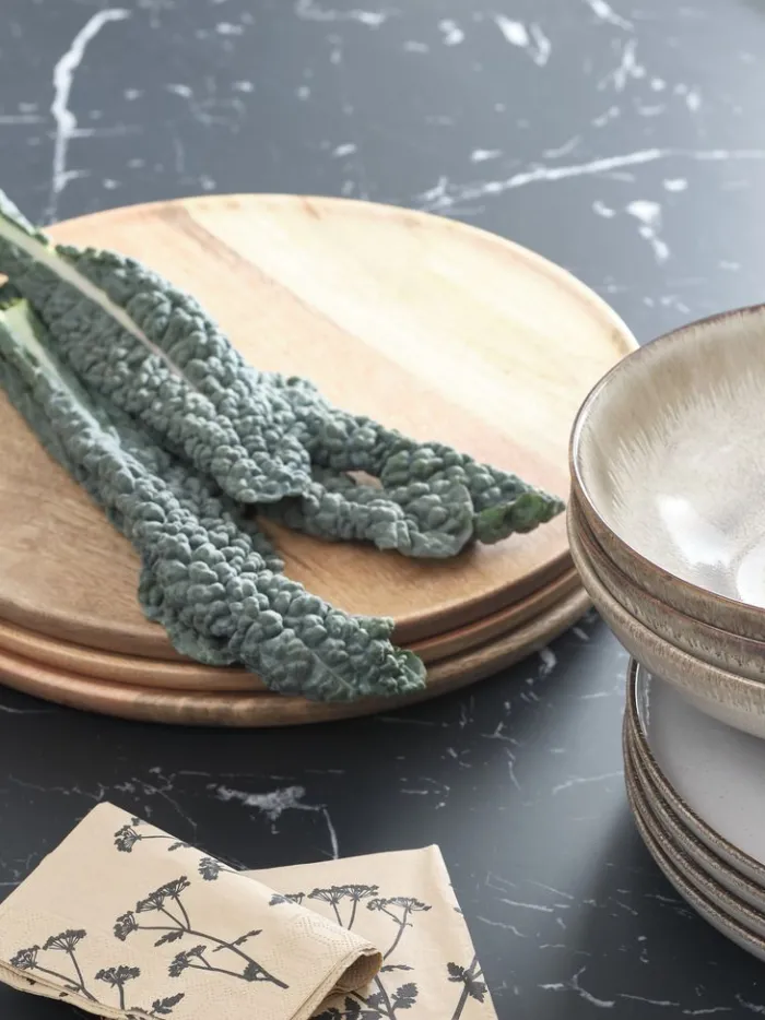 Naturlig dekorativ bakke lavet af mangotræ. Bakken har et glat, rundt design, der er ideelt til at vise stearinlys, ornamenter eller som en stilfuld opbevaringsplads til nøgler og småting. Hver bakke har et unikt udseende på grund af de naturlige variationer i træet. Ø30 cm