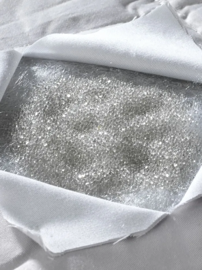 Tyngdedyne 9 kg med fyld af 95% glasperler/5% polyesterfibre. Tyngden af glasperlerne får dynen til at lægge sig tæt omkring kroppen. Dynen giver et blødt, jævnt tryk på hele kroppen, hvilket er kendt for at have en beroligende og afslappende effekt. Bolster i 100% bomuld. Inkl. opbevaringstaske. 135×200 cm