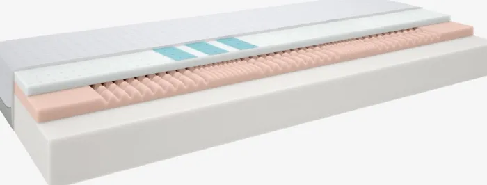 24 cm tyk skummadras 90×200 cm med 7 komfortzoner, hvilket giver en unik, ergonomisk korrekt støtte. Kerne af 4 cm fleksibelt Comfort+ skum, 16 cm purskum og 4 cm trykaflastende AIR memory foam. AIR memory foam former sig præcist efter kroppen, selv i et køligt sovemiljø. Madrassen har kølende gel i overkropsdelen. Vaskbart betræk med polyethylen på den ene side, som har en øjeblikkelig, beroligende kølende effekt.