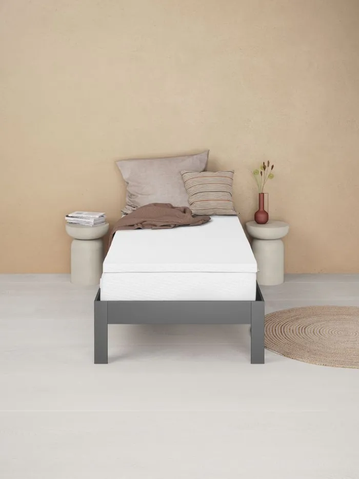 4.5 cm tyk topmadras 90×200 cm med kerne af trykaflastende AIR memory foam. AIR memory foam former sig hurtigt og præcist efter kroppen, selv i et køligt sovemiljø. Vaskbart betræk.