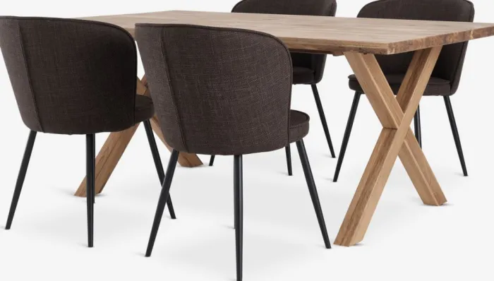 GRIBSKOV + RISSKOV Spisebordssæt|GRIBSKOV L180 bord eg + 4 RISSKOV stole mørkebrun
