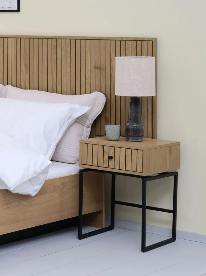 HEMDRUP Sengeborde|Sengeborde|Sengebord 1 skuffe egefarve/sort