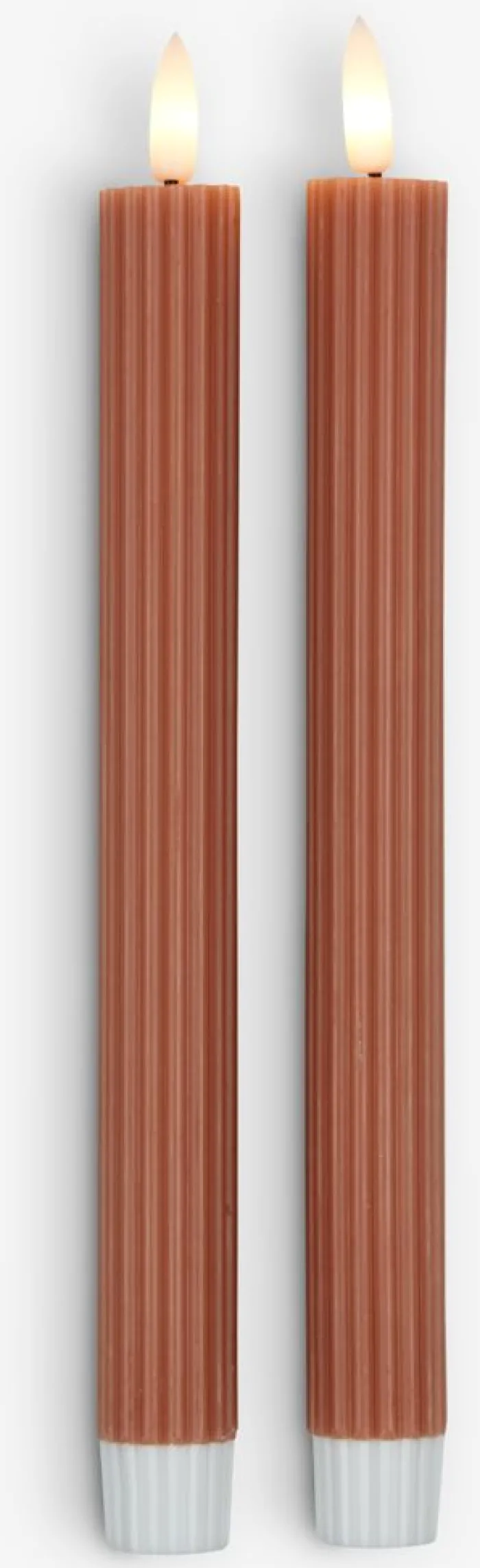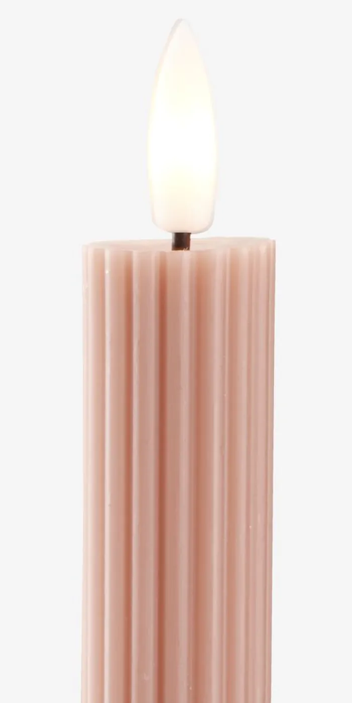 Støvet rosa LED-lys med rillet design. Disse lys har en indbygget timerfunktion med 6/18 timers interval og en lystid på 30.000 timer. Bruger 2 AAA batterier (medfølger ikke). Ideelle til indendørs brug. Ø2.2 x H24.5 cm