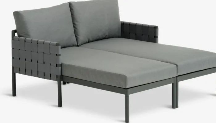 Solseng i aluminium og polypropylen. Inkl. luksushynder med slidstærkt, strukturvævet betræk. B136 x L156 x H63 cm
