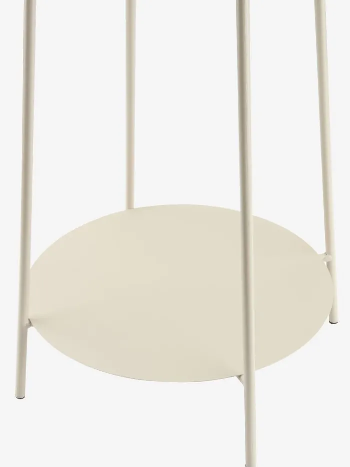 Beige piedestal i stål med et enkelt og moderne design. Piedestalen har to runde hylder, som giver ekstra opbevaringsplads og gør det nemt at vise dine yndlingsdekorationer frem. Perfekt til at løfte planter, vaser eller andre dekorative genstande i hjemmet. Ø35 x H60 cm