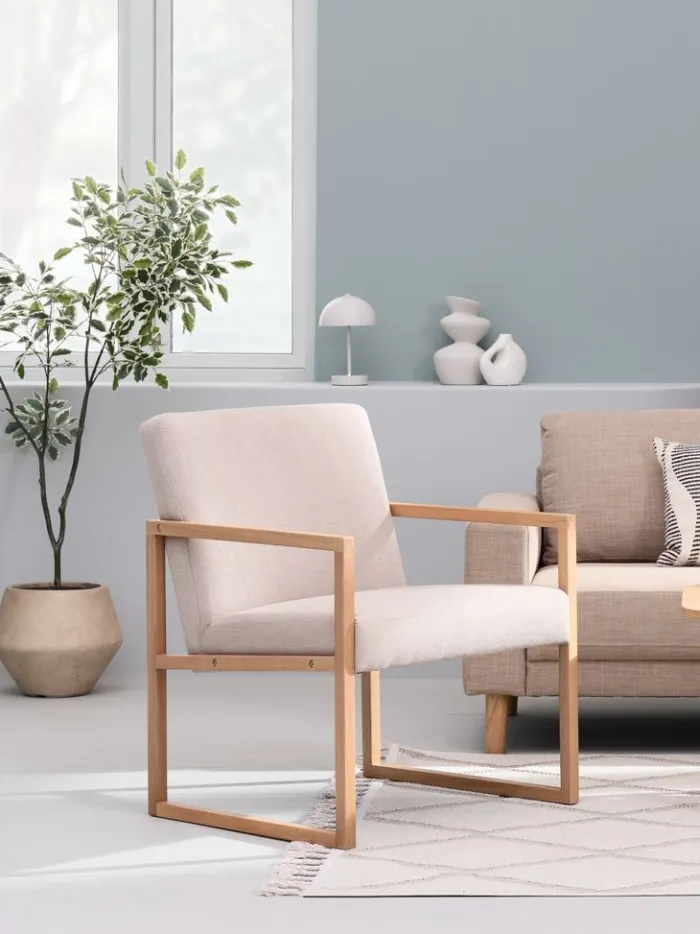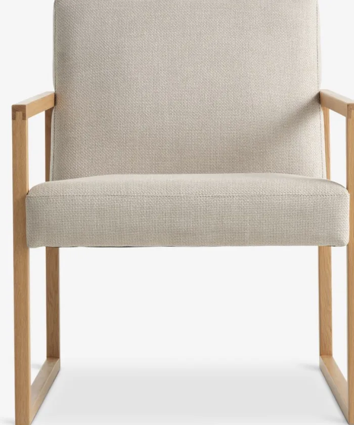 KALUNDBORG Lænestole|Lænestol sandfarvet stof/eg