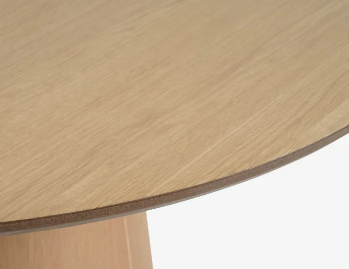 Rundt spisebord i egefiner, som er lakeret for at forlænge holdbarheden. Ø120 x H75 cm