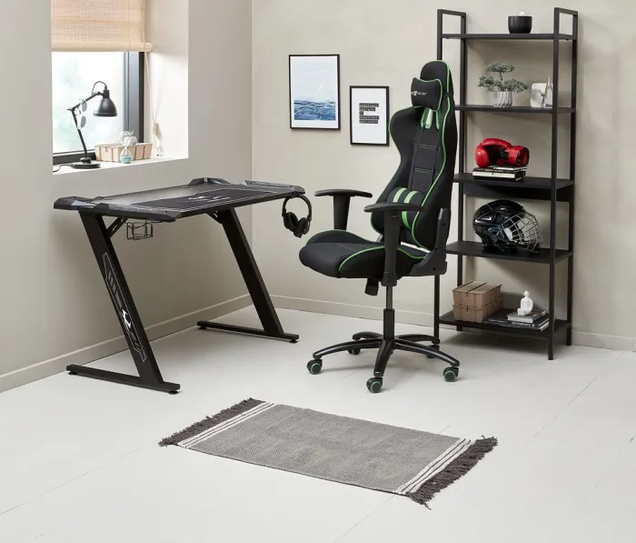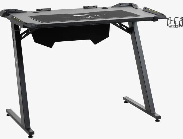 LINDHOLM Skriveborde|Gamer-bord m/LED-lys og kopholder sort