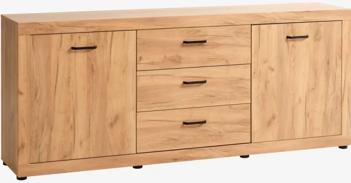LINTRUP Skænke Og Vitrineskabe|Skænke Og Vitrineskabe|Skænk 2 låger 3 skuffer egefarve