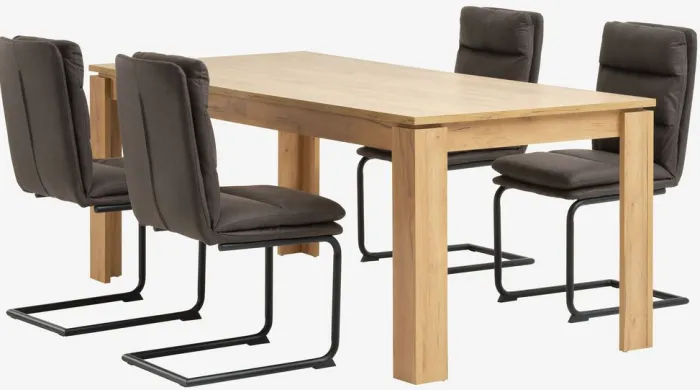 LINTRUP + ULSTRUP Spisebordssæt|LINTRUP L190/280 bord eg + 4 ULSTRUP stole antracitgrå