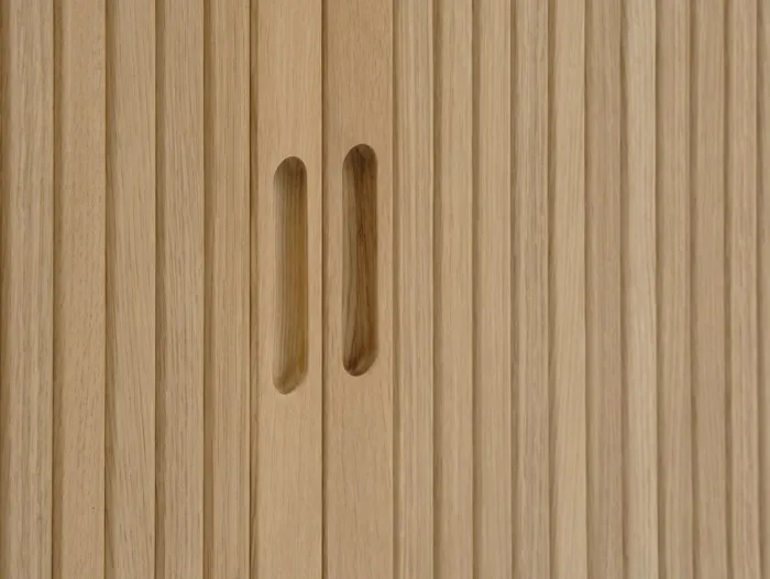 Massiv eg, egefiner og kunstfiner. Med jalousilåger. B160 x H80 x D40 cm