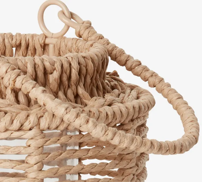 Lanterne lavet af papirstrå med en glasholder indeni til et stearinlys. Denne lanterne har et naturligt, vævet design, der tilføjer et rustikt præg til enhver dekoration. Håndtaget gør den nem at bære og flytte rundt. Ø15 x H20 cm
