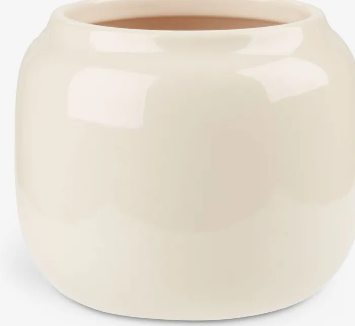 Beige blomsterpotte i lertøj med en glat og skinnende finish. Potten har en rund form, der gør den ideel til at fremhæve dine planter på en elegant måde. Ø16 x H13 cm