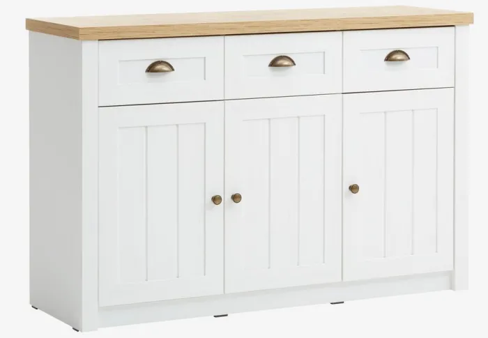 MARKSKEL Skænke Og Vitrineskabe|Skænke Og Vitrineskabe|Skænk 3 låger /egefarve Hvid