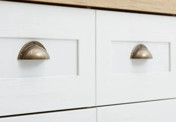 Kunstfiner og MDF. Skuffer med fuldt udtræk. B132 x H88 x D43 cm