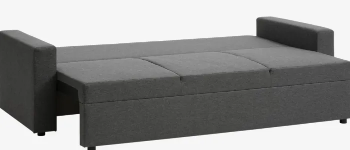 3-personers sofa i stof. Sofaen kan nemt laves om til en seng. Sæde- og ryghynder i skum. Med opbevaringsplads. Udslået liggemål 135×195 cm. B225 x H74 x D91 cm