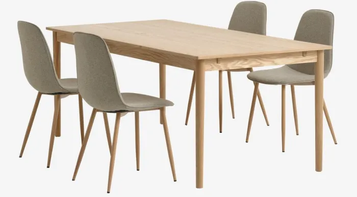 MARSTRUP + BISTRUP Spisebordssæt|MARSTRUP L190/280 bord eg + 4 BISTRUP stole sand