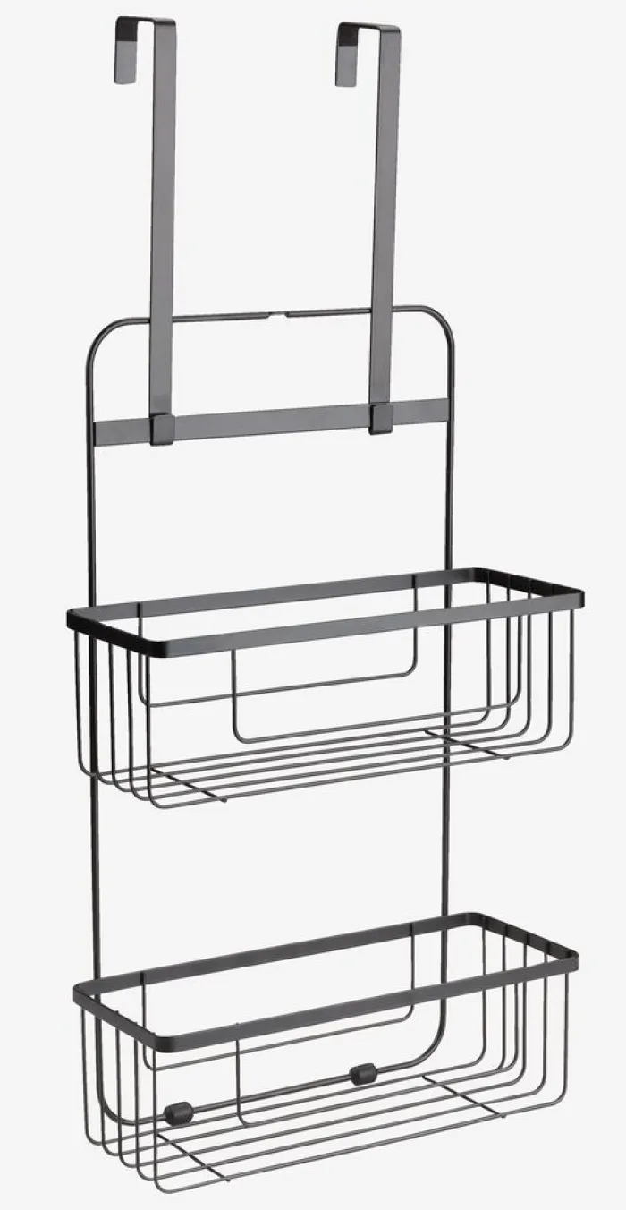 NACKA Badeværelsesopbevaring|Bruseopbevaring|Hylde m/multifunktionelle ophængskroge sort
