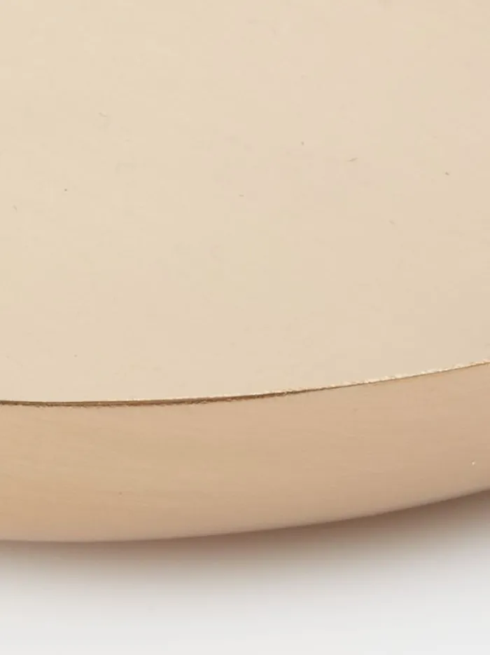 Messingfarvet dekorationsbakke i stål med en elegant, oval form. Perfekt til at organisere små genstande eller som en stilfuld base for dekorative elementer. Bakken har en glat overflade og en subtil glans, der tilføjer et sofistikeret touch til ethvert rum. B17 x L30 cm