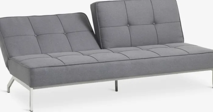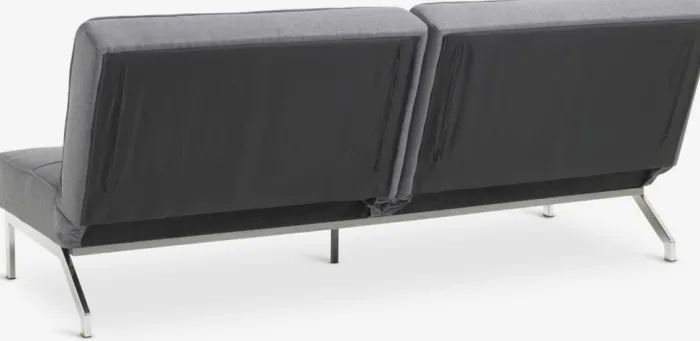 3-personers sofa i stof. Sofaen kan nemt laves om til en seng. Sæde- og ryghynder i skum. Ben i stål. Udslået liggemål 120×198 cm. B198 x H87 x D95 cm