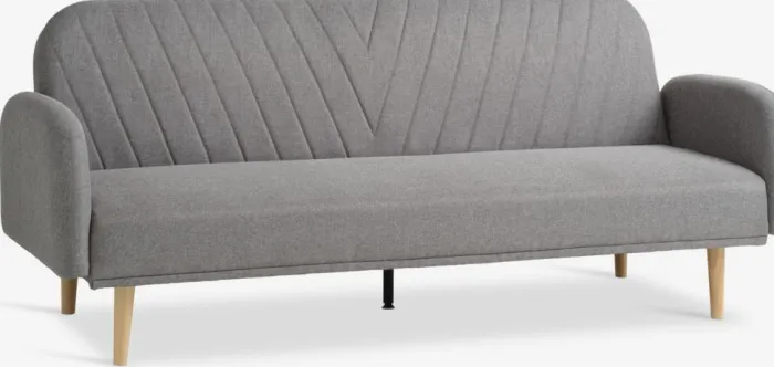 3-personers sofa i stof. Sofaen kan nemt laves om til en seng. Sæde- og ryghynder i skum. Ben i massivt træ. Udslået liggemål 106×190 cm. B209 x H82 x D83 cm