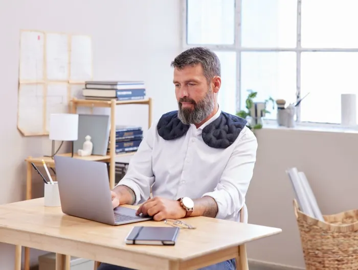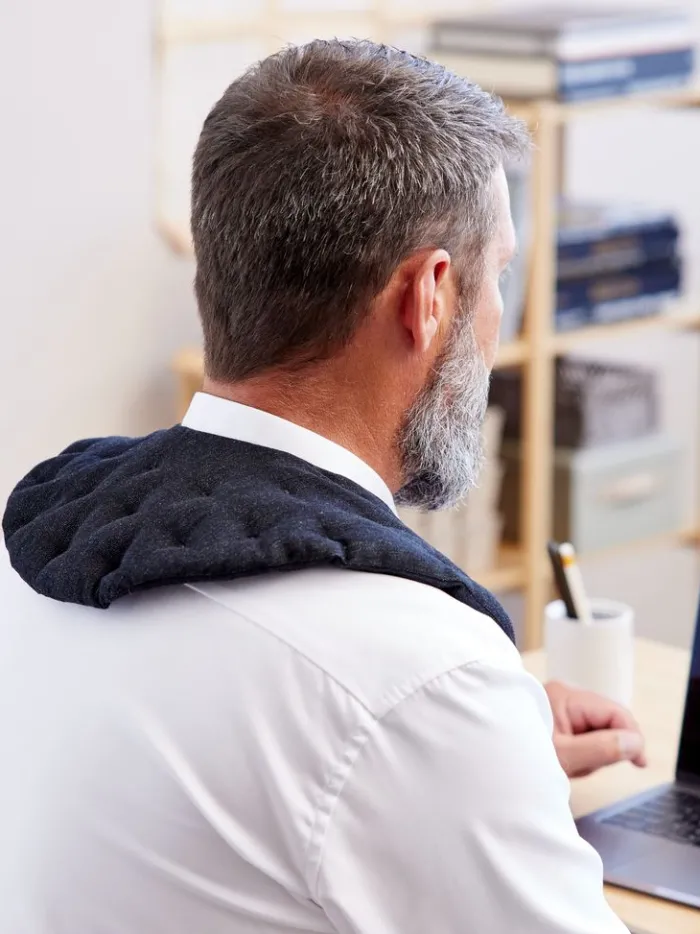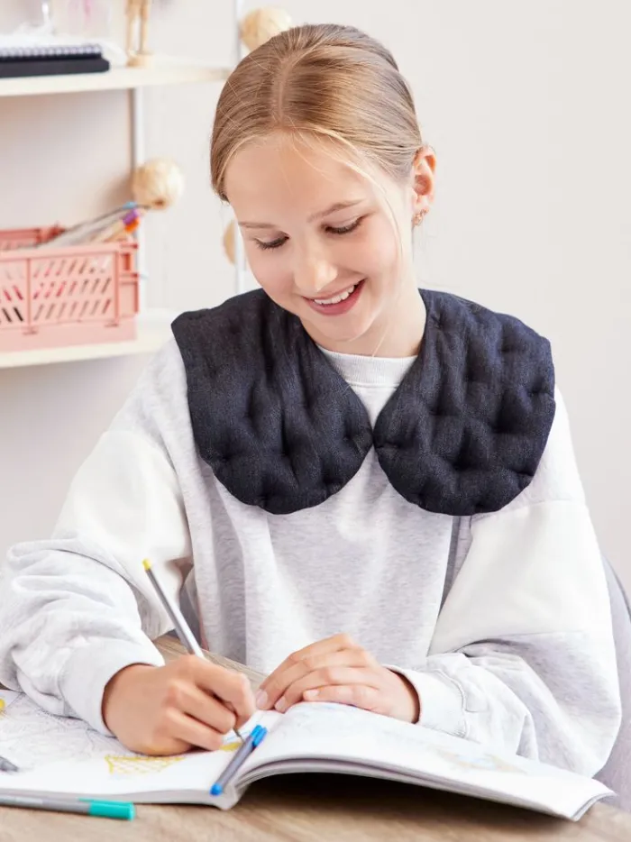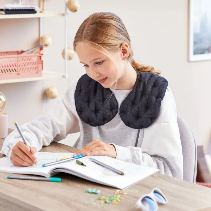 Tyngdekrave 1.5 kg med fyld af 100% plastikperler. Vægten fra plastikperlerne giver et jævnt, stabilt tryk på skuldene, hvilket er kendt for at have en beroligende og afslappende effekt. Bolster i 46% bomuld/26% viskose/26% polyester/2% elastan. Inkl. opbevaringstaske. 35×35 cm