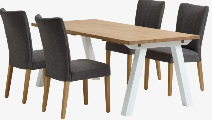 SKAGEN + NORDRUP Spisebordssæt|SKAGEN L200 bord eg + 4 NORDRUP stole grå