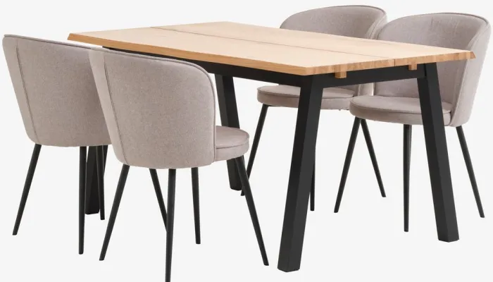 Be the first to review “SKOVLUNDE + RISSKOV Spisebordssæt|SKOVLUNDE L160 bord natur eg + 4 RISSKOV stole lysegrå” Annuller svar