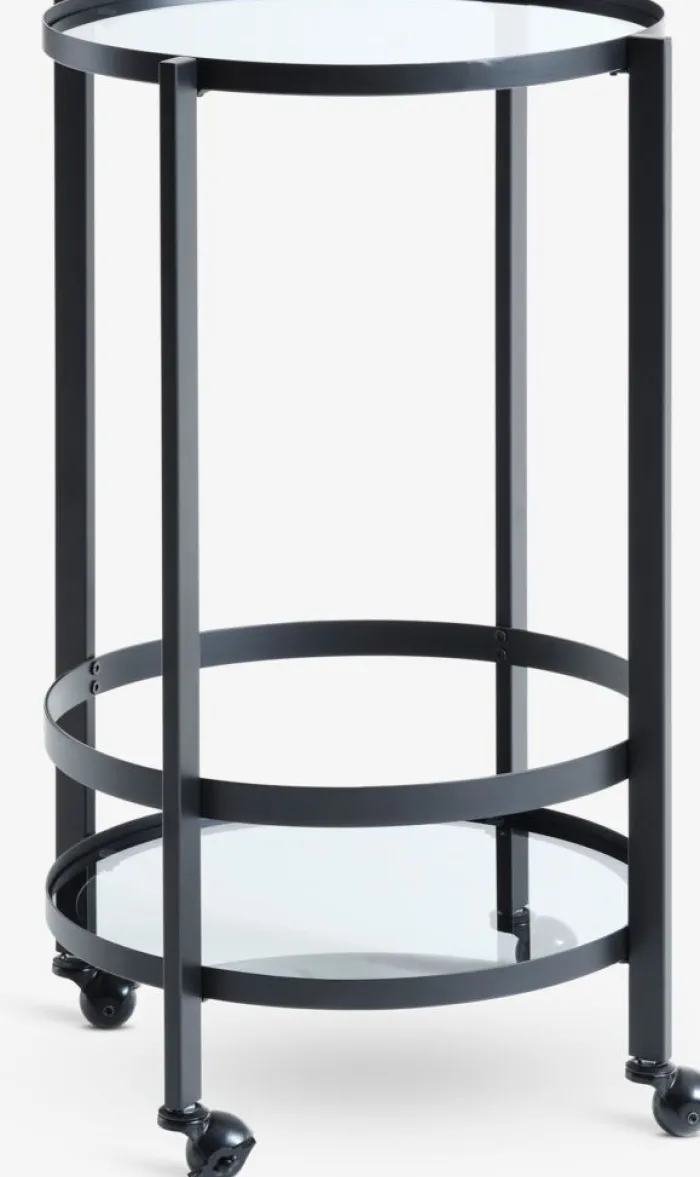 SORTEBRO Småopbevaring Diverse|Rullebord 2 hylder sort/glas