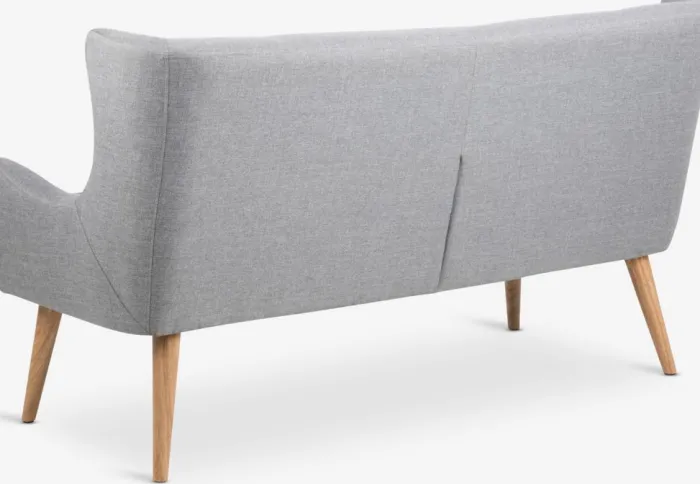 2-personers sofa i stof. Sæde- og ryghynder i skum. Ben i massivt træ. B158 x H90 x D68 cm