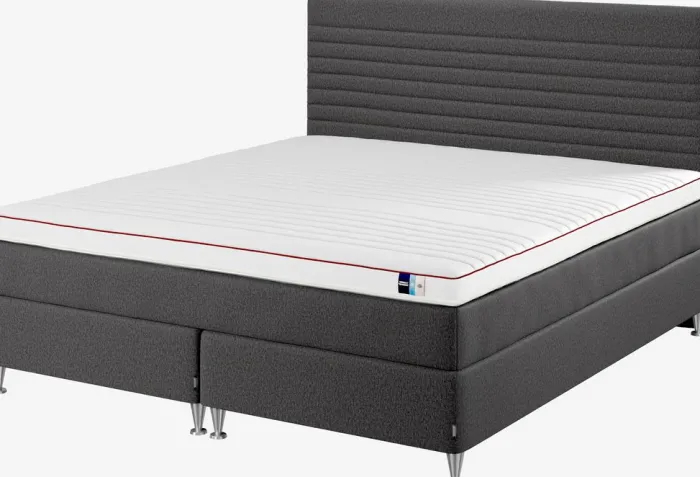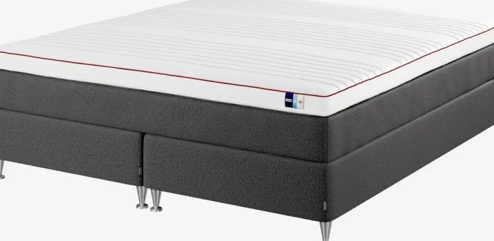 Kontinentalseng 180×200 cm. 2 vendbare springmadrasser med pocket-fjedre 225/m2, polstret med åndbart Cooltex Breeze. Madrassen er inddelt i 7 komfortzoner hvilket giver en unik, ergonomisk korrekt støtte. 1 topmadras, 10 cm tyk med kerne af åndbar latex, som effektivt leder overskydende varme væk. Vaskbart betræk med blød, kraftig quiltning. Betrækket indeholder kølende og temperaturregulerende TEMPRAKON® rumteknologi, hvilket skaber et tørt og behageligt sovemiljø. Basen består af 2 boxmadrasser med pocket-fjedre 225/m2, inddelt i 9 komfortzoner. Inkl. ben. Ekskl. gavl.