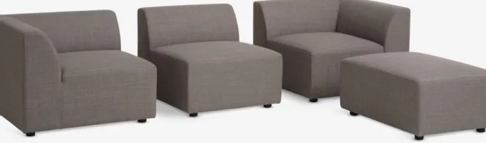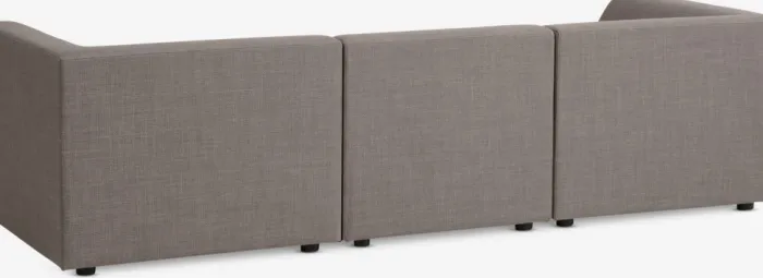 3-personers sofa i stof. Sæde- og ryghynder i skum. Sofaen består af 4 moduler, som kan kombineres på forskellige måder. B250 x H67 x D88/176 cm