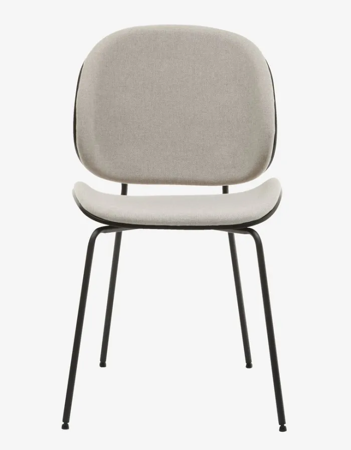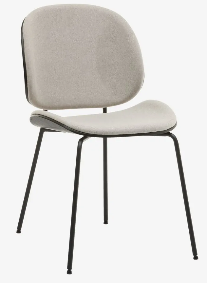 Spisebordsstol med polstret sæde og ryglæn i lys sandfarve. Sorte ben i stål.