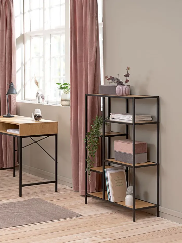 TRAPPEDAL Reoler Og Rumdelere|Reoler Og Rumdelere|Reol 5 hylder eg/sort Eg+Sort