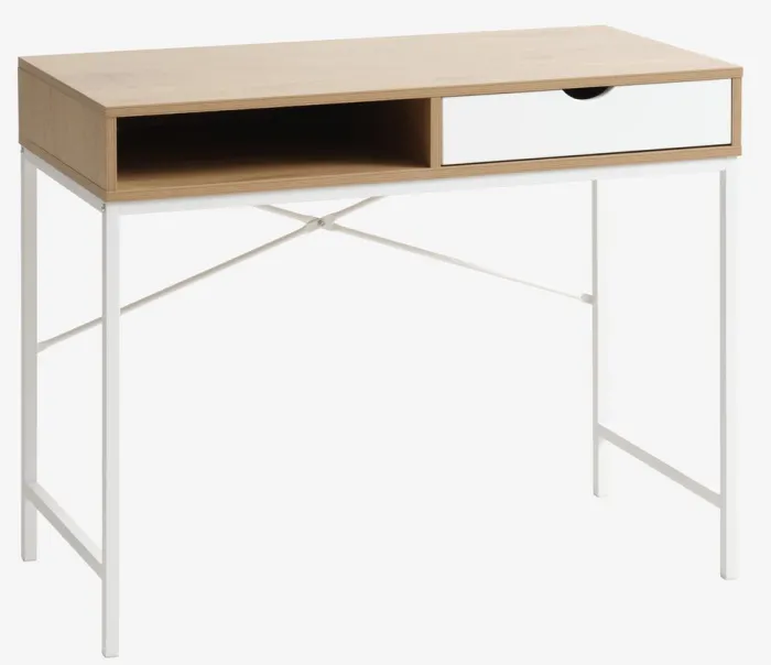TRAPPEDAL Skriveborde|Skrivebord 48×95 1 skuffe egefarve/hvid Eg+Hvid