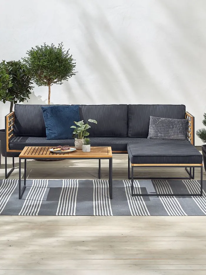Loungebord i galvaniseret stål og olieret FSC®-hårdttræ. B60 x L90 x H43 cm
